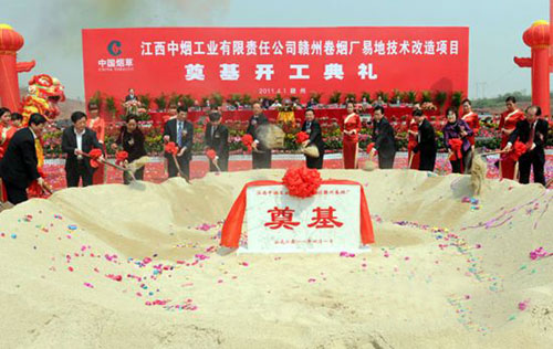 煙草在線據(jù)《贛南日報》報道 4月1日上午,總投資約22億元、按60萬箱年卷包能力建設(shè)的江西中煙贛州卷煙廠易地技術(shù)改造項目,在贛州開發(fā)區(qū)香港工業(yè)園奠基開工。按照規(guī)劃,一座占地730畝,集自動化、現(xiàn)代化、智能化為一體的花園式工廠,將在2013年底前矗立在贛州大地上,成為全省工業(yè)崛起的一顆璀璨明珠,為推進江西中煙卷煙上水平,加快江西經(jīng)濟發(fā)展作出新的更大貢獻。