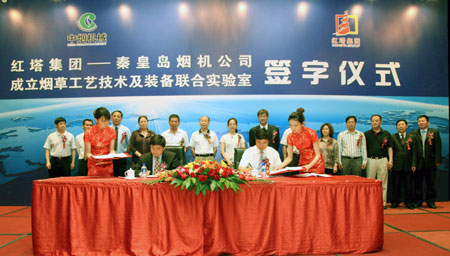 煙草在線綜合報道 5月27日,經過近兩年的精心組織和認真籌備,“紅塔集團——秦皇島煙機公司煙草工藝技術及裝備聯(lián)合實驗室”簽字儀式在北京隆重舉行。