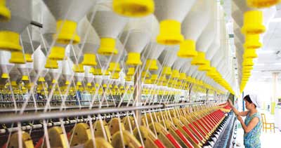 10月21日的江西九江一家紡織廠的工人在紡紗 張海巖攝(新華社發(fā)) |