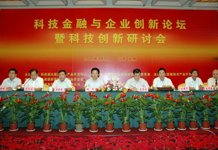 為推動科技金融事業(yè)的發(fā)展,引導(dǎo)包括金融資源在內(nèi)的創(chuàng)新要素向高新區(qū)的科技型企業(yè)集聚,指導(dǎo)企業(yè)運用科學(xué)思維、科學(xué)方法和科學(xué)工具來進(jìn)行科技創(chuàng)新,科技部火炬高技術(shù)產(chǎn)業(yè)開發(fā)中心、中國科技金融促進(jìn)會風(fēng)險投資專業(yè)委員會和太原高新技術(shù)產(chǎn)業(yè)開發(fā)區(qū)于2010年7月9日在太原召開了“科技金融與企業(yè)創(chuàng)新論壇暨科技創(chuàng)新研討會”?萍疾奎h組成員、科技日報社社長、中國科技金融促進(jìn)會風(fēng)險投資專業(yè)委員會主任張景安,國務(wù)院參事、科技部原副部長劉燕華,山西省副省長張平,山西省科技廳廳長廉毅敏,太原市及太原高新技術(shù)產(chǎn)業(yè)開發(fā)區(qū)管委會有關(guān)領(lǐng)導(dǎo)出席了本次論壇?萍疾炕鹁娓呒夹g(shù)產(chǎn)業(yè)開發(fā)中心副主任、中國科技金融促進(jìn)會風(fēng)險投資專業(yè)委員會秘書長修小平主持了論壇的開幕式。來自科技部、山西省政府、太原市政府和太原高新區(qū)管委會以及太原高新區(qū)內(nèi)的企業(yè)和金融機構(gòu)的代表共約300人參加了大會。