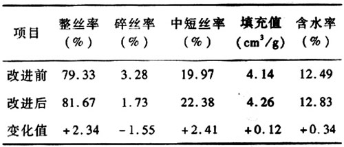 表1 改進(jìn)前后積絲盤內(nèi)煙絲的物理指標(biāo)對比①②③