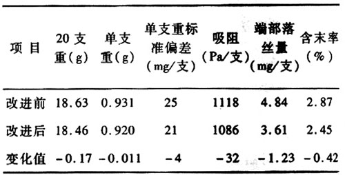 表2 改進(jìn)前后煙支物理指標(biāo)對比①②
