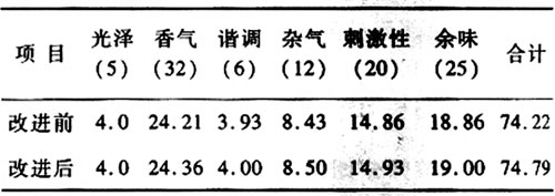 表4 改進(jìn)前后卷煙的感官質(zhì)量評吸結(jié)果對比①